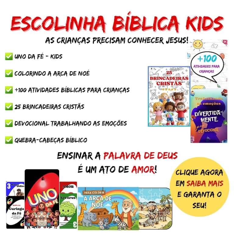 Clique agora mesmo no botão abaixo e receba o KIT ESCOLINHA BÍBLICA KIDS